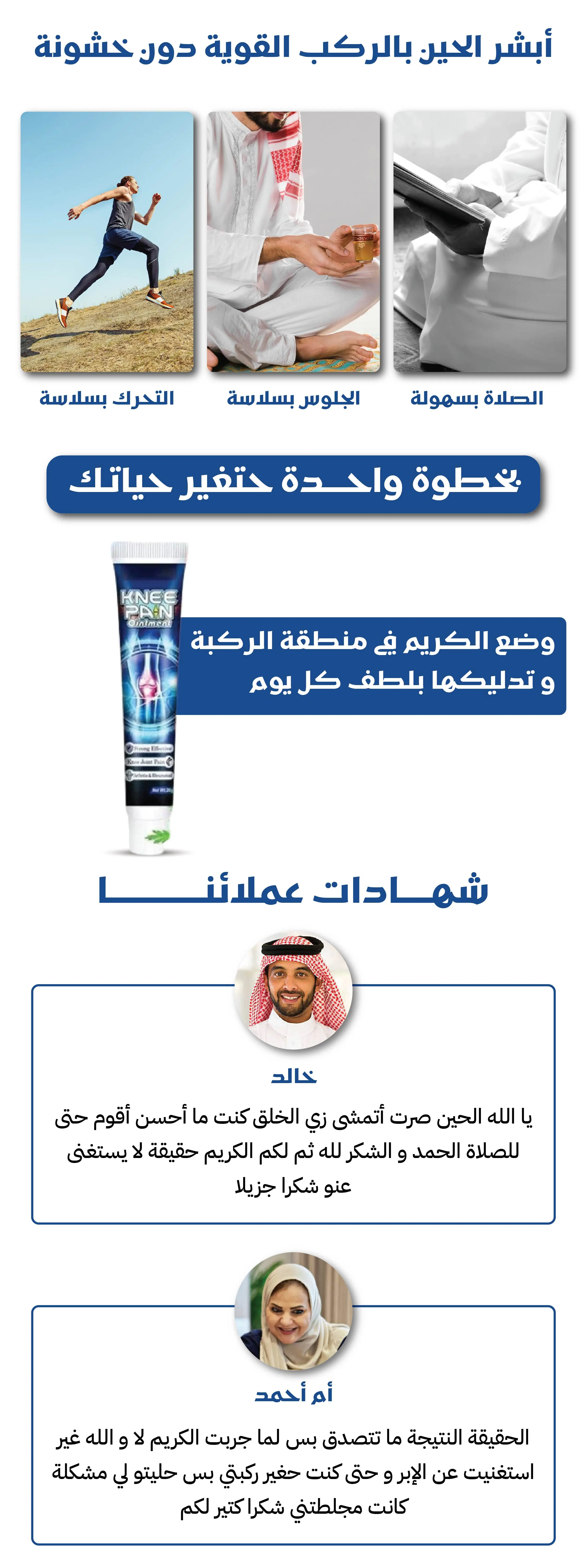والله يا جماعة، تعالجت من آلام ركبتي بعد ما جربت علاج الخشونة المعجزة. صرت أقدر أمشي وأتحرك بدون ألم. أنصحكم تجربونه.